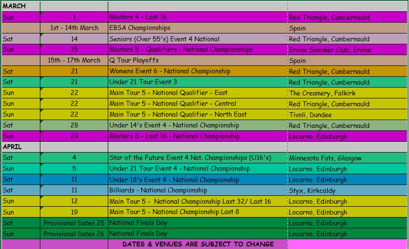 Main Tour Main Tour Events 2018-19 Main Tour Results National Championship – Last 8 Results – Locarno – Saturday 27th April 2019 April 29, 2019 Robert Simpson